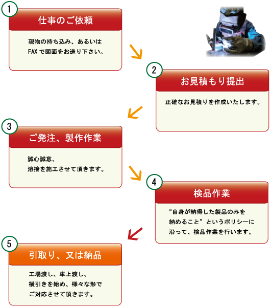 A.基本的には弊社が窓口となり信頼出来る工場への外注となります。しかし、カシマウェルディングは塗装ブースやシャーリングマシン等も保有してるため、内容によっては施工可能です。